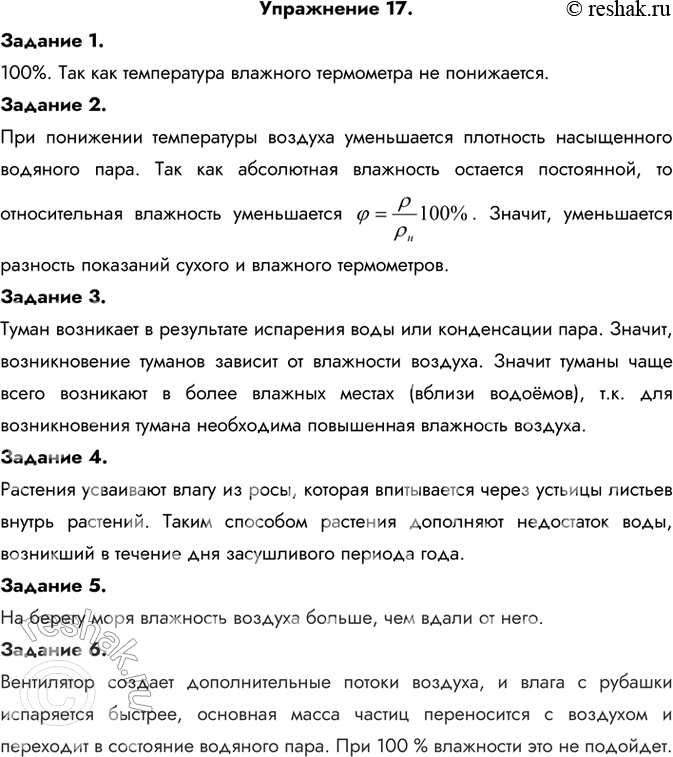 6. Если на мокрую рубашку в комнате направить поток воздуха от вентилятора, то она высохнет намного быстрее. Объясните механизм этого явления. Поможет ли вентилятор, если относительная влажность воздуха будет 100% ?