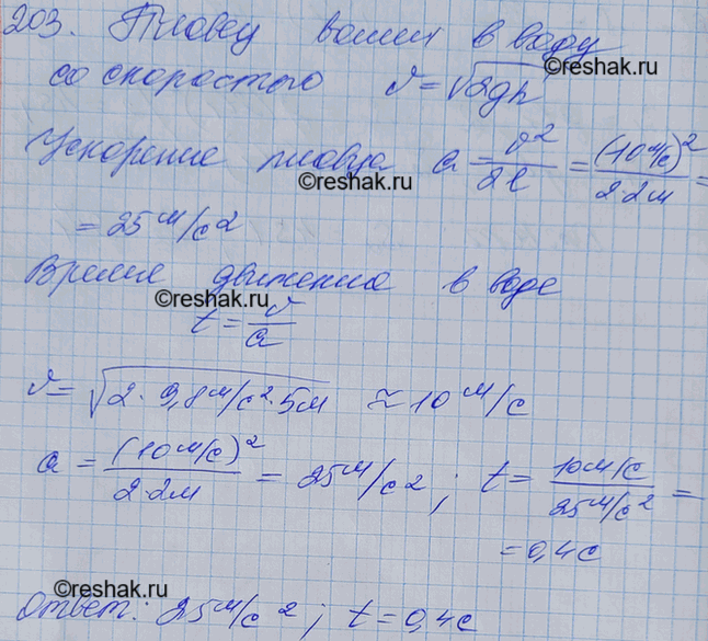 Пловец, спрыгнув с пятиметровой вышки, погрузился в воду на глубину 2 м. Сколько времени и с каким ускорением он двигался в воде?