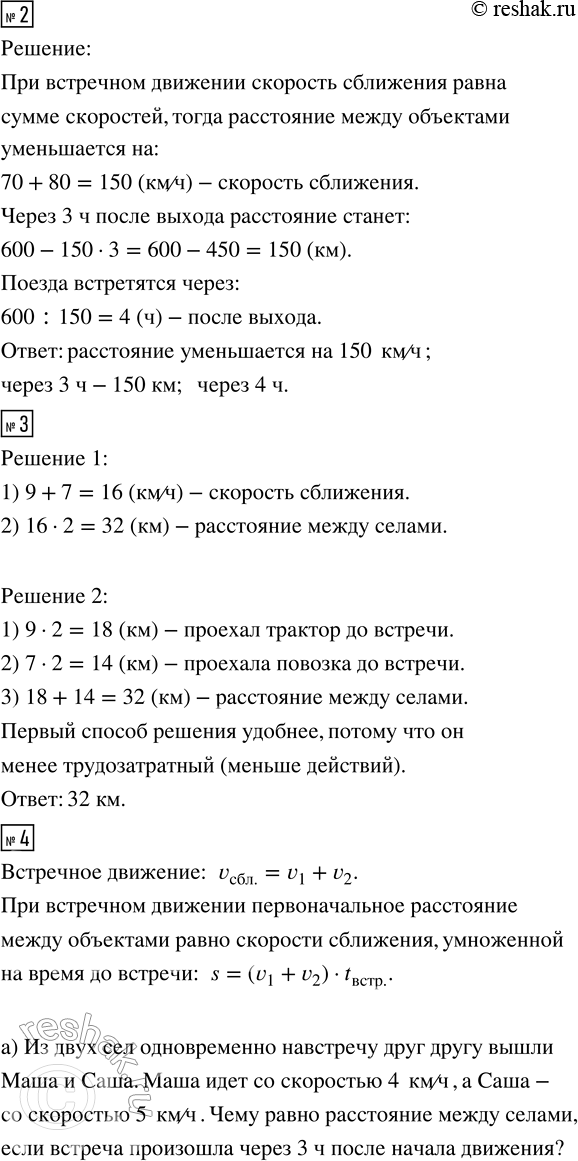 Из двух сел выехали одновременно навстречу друг другу трактор и повозка с сеном. Скорость трактора 9 км/ч, а скорость повозки 7 км/ч. Чему равно расстояние между селами, если встреча произошла через 2 ч после начала движения?