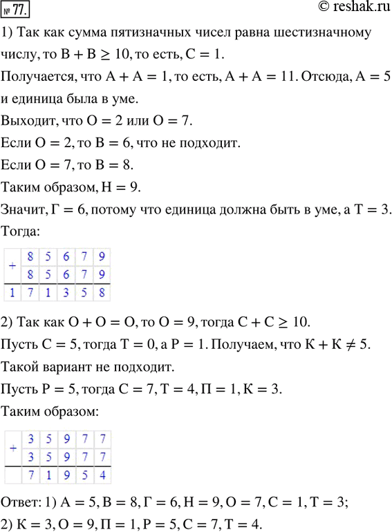 77. Решите числовой ребус. 1) ВАГОН + ВАГОН = СОСТАВ; 2) КРОСС + КРОСС = СПОРТ.