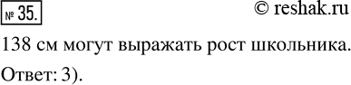 35. Значение какой величины могут выражать 138 см? 1) расстояние между городами 2) ширина тетради 3) рост школьника 4) длина
