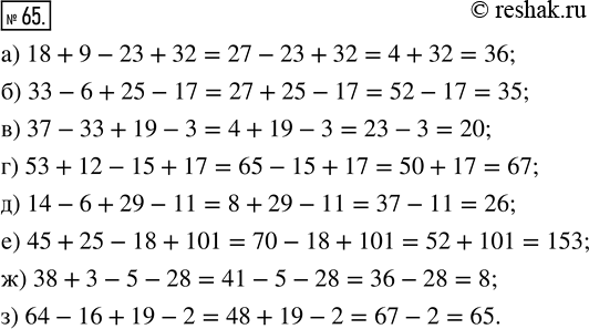 ж) 38 + 3 - 5 - 28; з) 64 - 16 + 19 - 2.