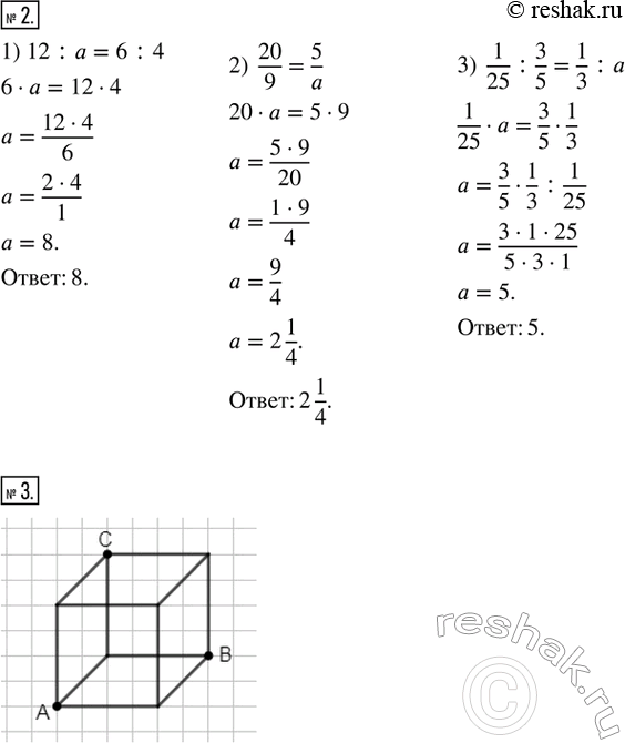 2. Найти неизвестный член пропорции, обозначенный буквой а: