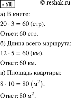 610. а) Мальчик прочитал треть книги, что составило 20 страниц. Сколько страниц в книге?