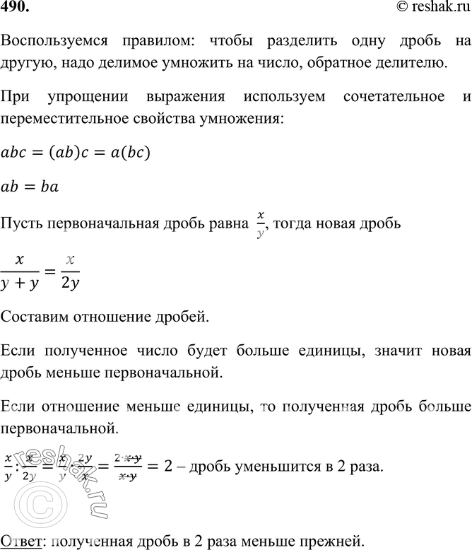490 Увеличится или уменьшится значение дроби и во сколько раз, если к ее знаменателю прибавить число равное этому знаменателю?