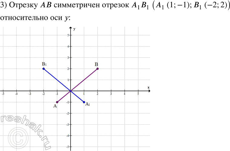 573. Постройте на координатной плоскости отрезок AВ, где A (—1; -1), В (2; 2). Постройте отрезок, симметричный отрезку AВ относительно: 1) начала координат: