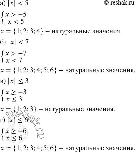 139. Укажите все натуральные значения x, при которых верно неравенство: а) |x|б) |x|в) |x|?3; г) |x|?6.
