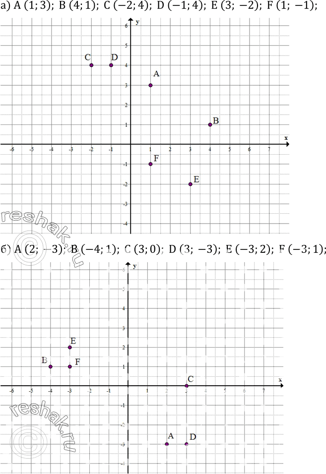 б) A (2; -3); B (-4;1); C (3;0); D (3; -3); E (-3;2); F (-3;1).