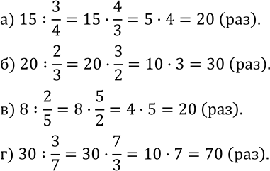 476. Сколько раз: а) 3/4 содержится в 15; в) 2/5 содержится в 8; б) 2/3 содержится в 20; г) 3/7 содержится в 30?
