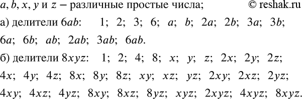 904. a,b,x,y и z - различные простые числа. Запишите все делители произведения: а) 6ab; б) 8xyz.