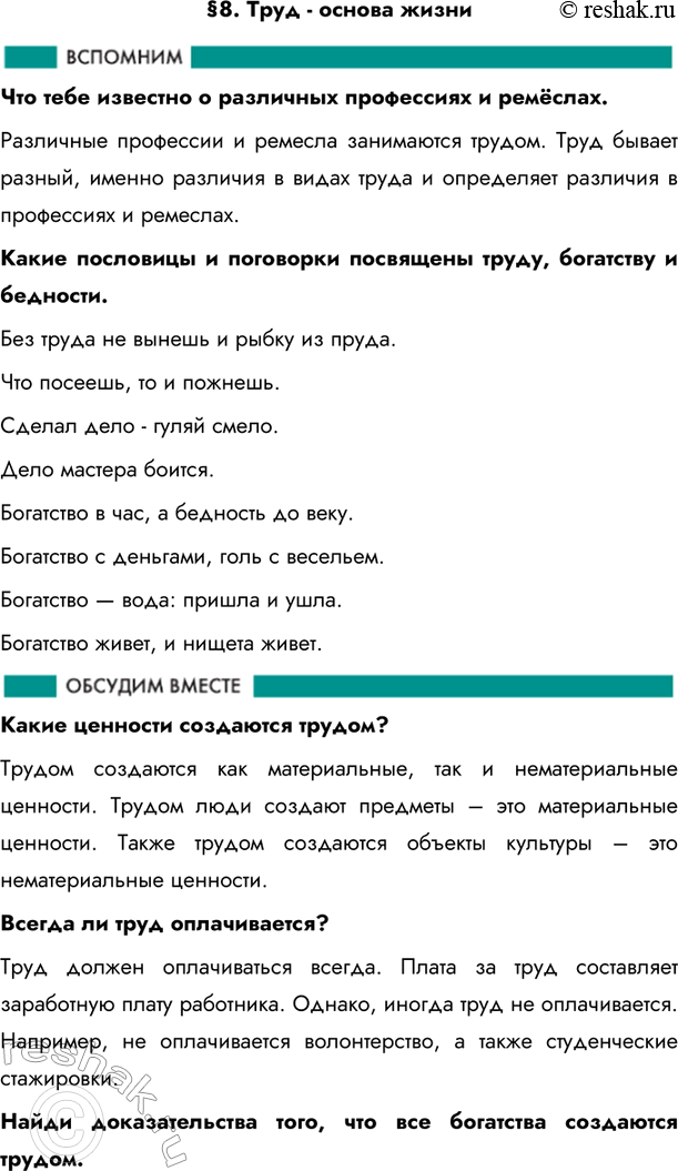 §8. Труд - основа жизни Что тебе известно о различных профессиях и ремёслах. Различные профессии и ремесла занимаются трудом. Труд бывает разный, именно различия в видах труда и определяет различия в профессиях и ремеслах.