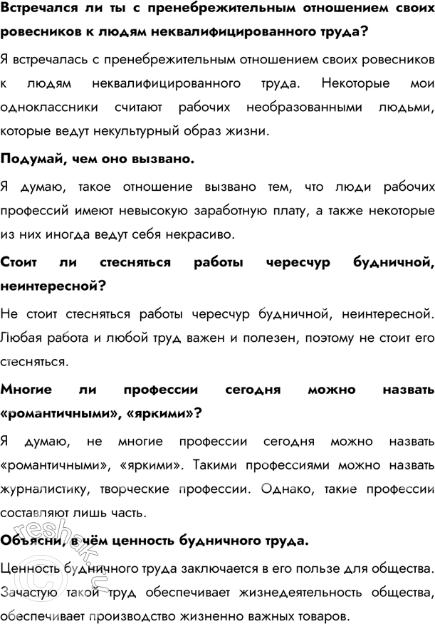 Я встречалась с пренебрежительным отношением своих ровесников к людям неквалифицированного труда. Некоторые мои одноклассники считают рабочих необразованными людьми, которые ведут некультурный образ жизни.