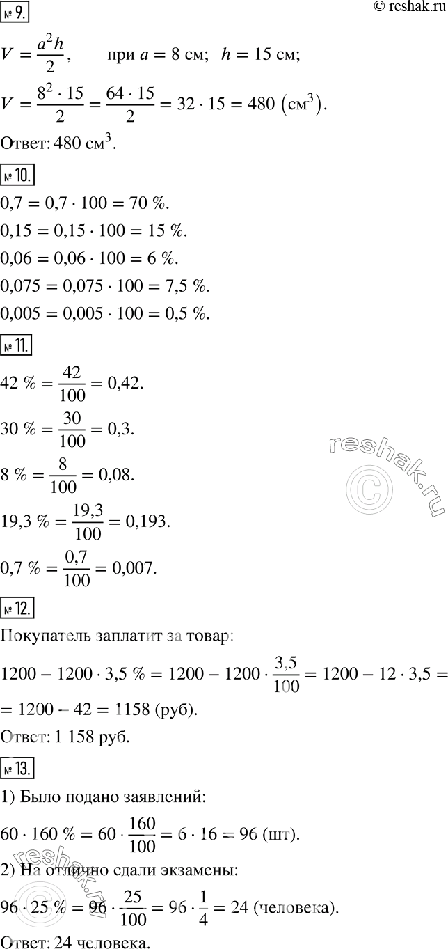 11 Выразите десятичной дробью: 42%, 30%, 8%, 19,3%, 0,7%.