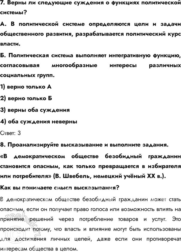Б. Политическая система выполняет интегративную функцию, согласовывая многообразные интересы различных социальных групп.