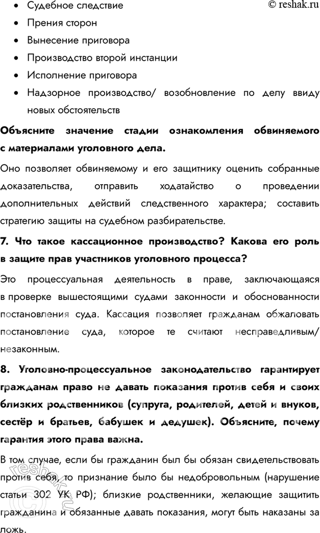 6. Используя текст учебника, перечислите основные стадии уголовного процесса.