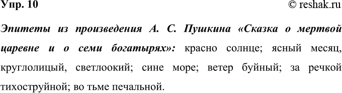 10. Перечитайте фрагмент «Сказки о мёртвой царевне и семи богатырях» А. С. Пушкина, начиная со слов