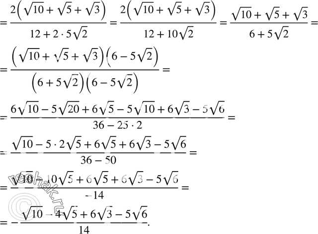 907. Освободитесь от иррациональности в знаменателе дроби: 1) 1/ (корень 6 + корень 2 + 1); 2) 2/ (корень 10 + корень 5 - корень 3).