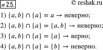 2.5. Какое из следующих утверждений верно: 1) {a,b}?{a}=a; 2) {a,b}?{a}={a,b}; 3) {a,b}?{a}={a}; 4) {a,b}?{a}={b}?