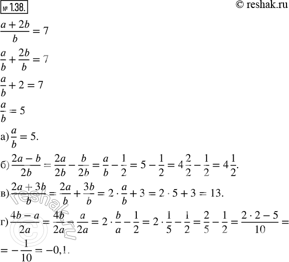 1.38. Зная, что (а+2b)/b = 7, найдите значение выражения: а) a/b; б) в) г)