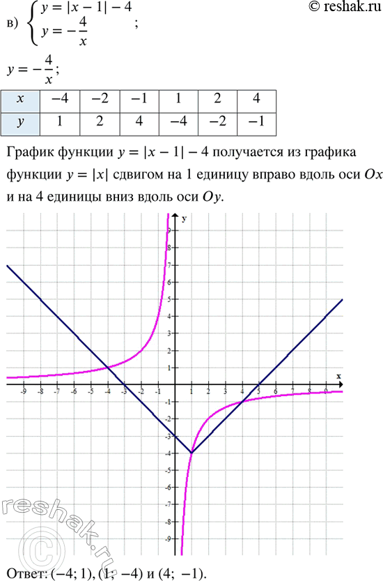 в) {y = |x - 1| - 4; y = -4/x};