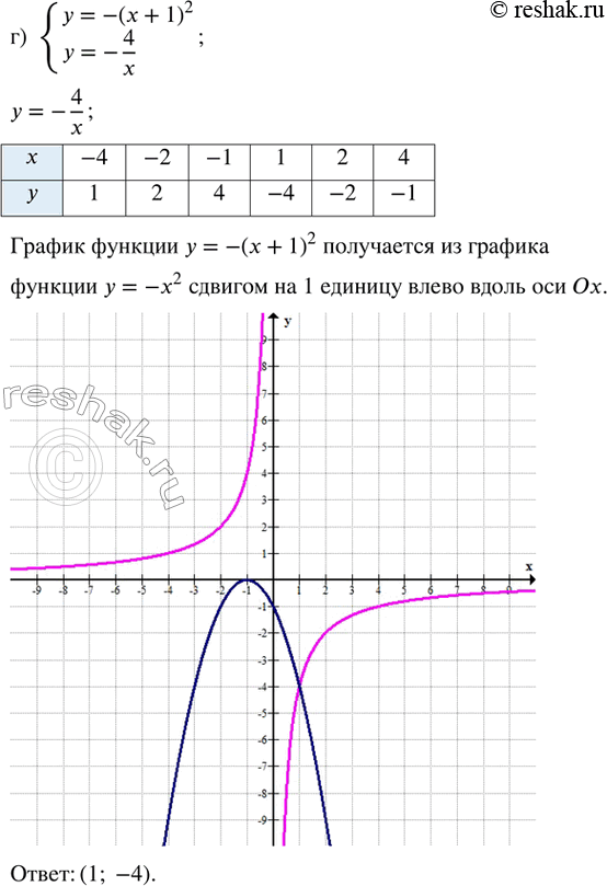 г) {y = -(x + 1)^2; y = -4/x};