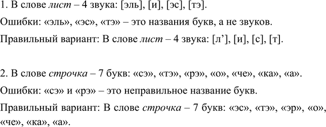 Ошибки: «эль», «эс», «тэ» – это названия букв, а не звуков.