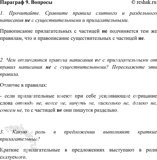 Ответы на вопросы Параграф 9 Глава 7 ГДЗ Шмелев 5 класс (Русский язык)