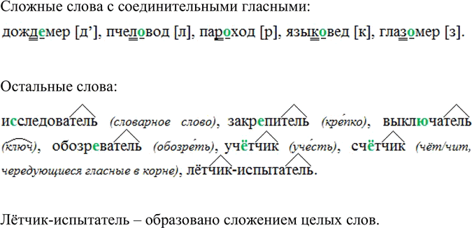 Выпишите сначала сложные слова, обозначая условия выбора соединительных о и е; затем спишите остальные слова, обозначая в них суффиксы. Как образовано последнее слово?
