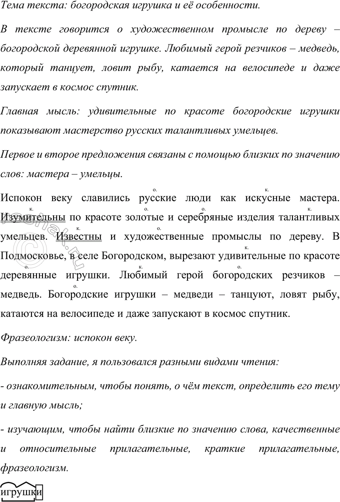 Главная мысль: удивительные по красоте богородские игрушки показывают мастерство русских талантливых умельцев.