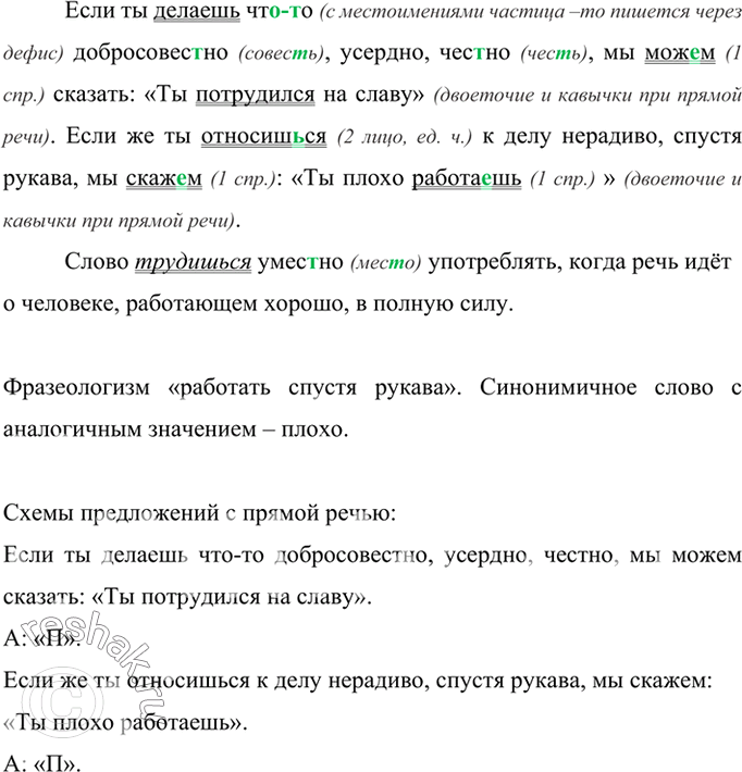 Если же ты относишься к делу нерадиво, спустя рукава, мы скажем: «Ты плохо работаешь». А: «П».