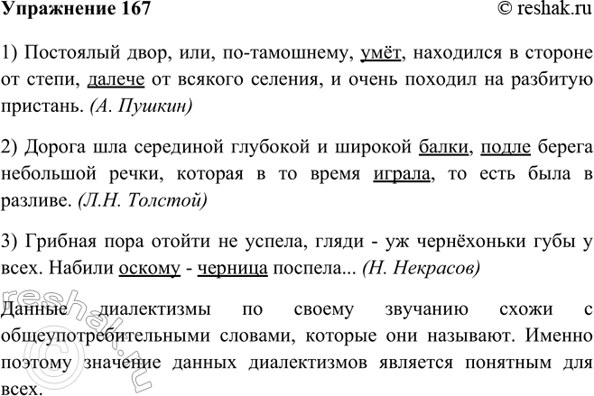 167 Найдите в предложениях диалектизмы и объясните, почему их значения понятны читателям.