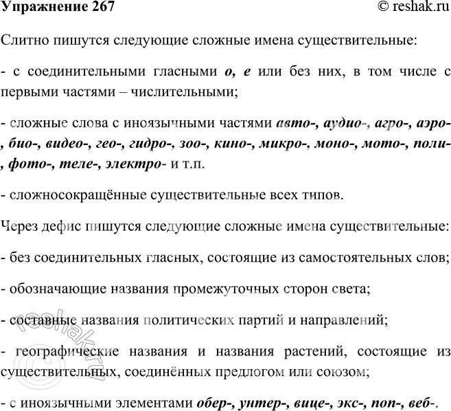 267 Рассмотрите таблицу и расскажите о правилах правописания сложных существительных.