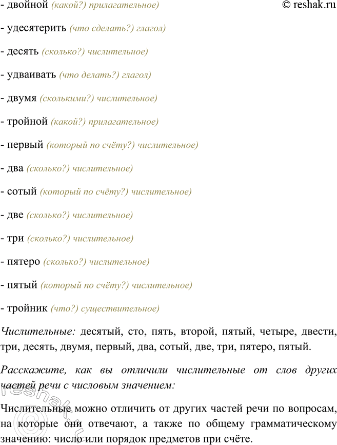 367 Прочитайте слова. Подумайте, что их объединяет. Найдите числительные. Расскажите, как вы отличили числительные от слов других частей речи с числовым значением.
