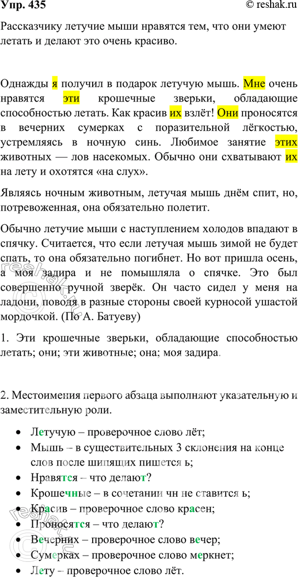 435 Прочитайте фрагмент текста. Чем летучие мыши нравятся автору-рассказчику? Однажды я получил в подарок летучую мышь. Мне очень нравятся эти крошечные зверьки, обладающие способностью летать.
