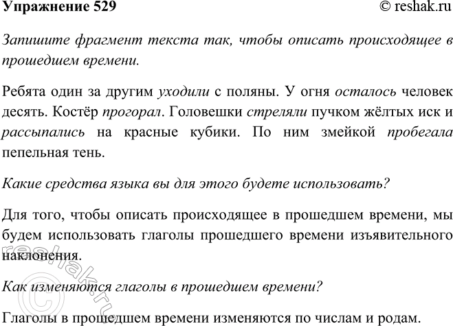 529 Запишите фрагмент текста так, чтобы описать происходящее в прошедшем времени. Какие средства языка вы для этого будете использовать?
