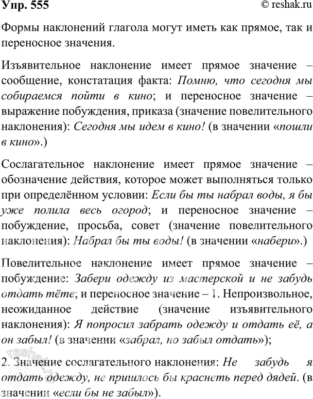 555 Опираясь на материалы таблицы, расскажите о формах наклонения глагола в переносном значении. Придумайте свои примеры употребления разных форм наклонений глагола в переносном значении.