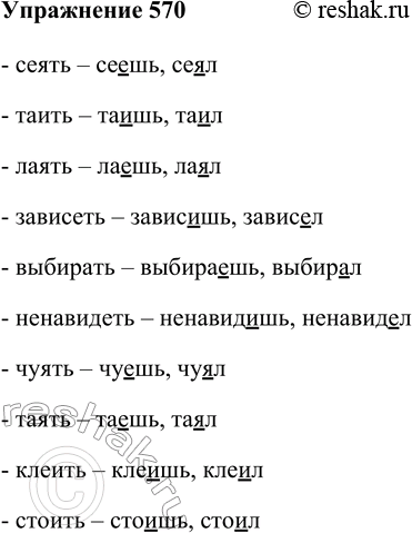 570 Образуйте от данных глаголов в начальной форме форму 2-го лица ед. числа настоящего времени и форму ед. числа прошедшего времени.