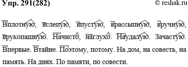 (В-, -ую)плотный, слепой, пустой, рассыпной, ручной, рукопашный. (На-, -о)чистый, глухой. (На-, -ую)удалой. (За-, -ую)частый. (В-, -ые)первый. (В-, -е)тайна. (По-, -ому)этот, тот. (На-)дом, совесть, память. (На-, -ях)день. (По-, -и)память, совесть.
