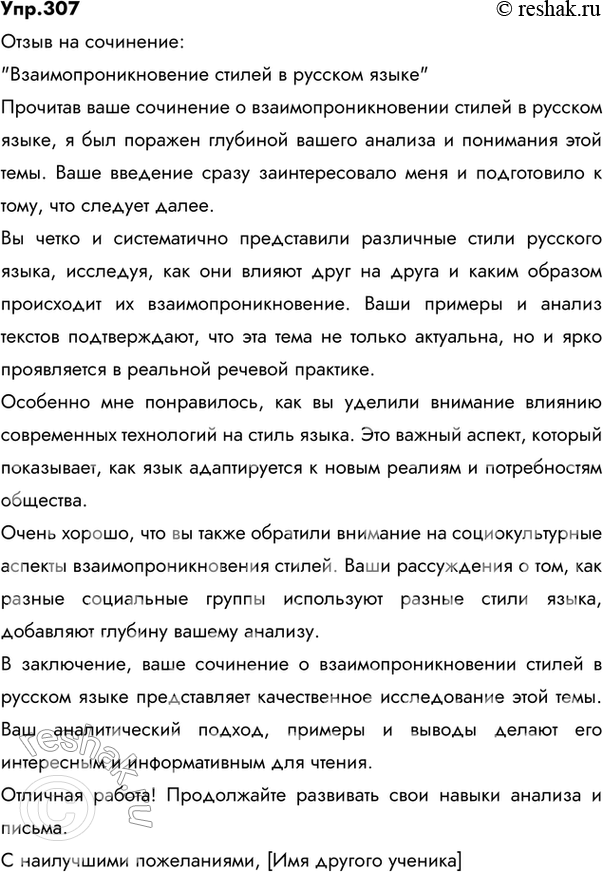 В заключение, ваше сочинение о взаимопроникновении стилей в русском языке представляет качественное исследование этой темы. Ваш аналитический подход, примеры и выводы делают его интересным и информативным для чтения.