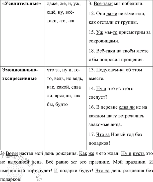 2) Прочитайте предложения и подберите примеры для каждой группы смысловых частиц. Запишите примеры группами, подчеркните частицы.