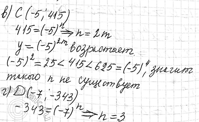 а) А(2;5); б) B(корень 3; 81); в) С(-5; 415); г) (7; -343)?