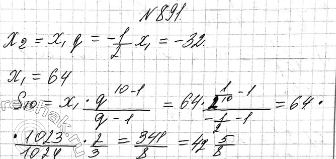 891. Найдите сумму первых десяти членов геометрической прогрессии (хn), если х2 = -32 и q = -1/2.