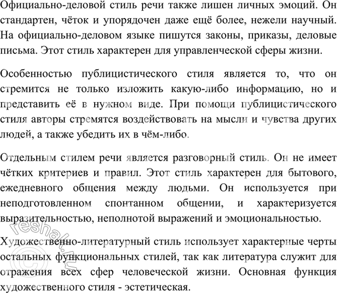 В русском языке выделяют следующие функциональные стили: научный, официально-деловой, публицистический, разговорный, художественно-литературный стиль.