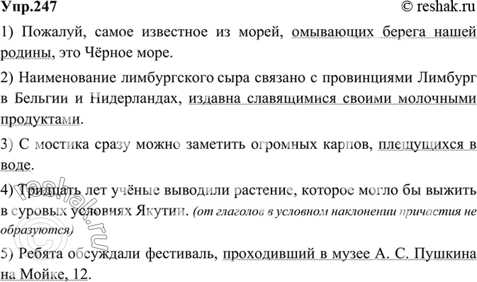 247 Замените придаточные предложения обособленными определениями, выраженными причастными оборотами. 1) Пожалуй, самое известное из морей, которые омывают берега нашей родины, это Чёрное море.
