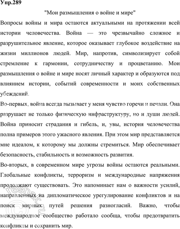 289 Напишите сочинение на одгу из предложенных тем: «Никто не забыт, ничто не забыто», «Мои размышления о войне и мире».
