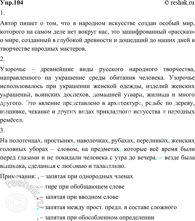 104. 1) Прочитайте текст. О какой особенности народного искусства пишет автор?
