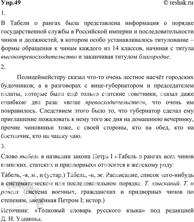 3) К какому роду относится слово табель в названии закона Петра I? Для справок используйте «Толковый словарь русского языка» Д. Н. Ушакова.