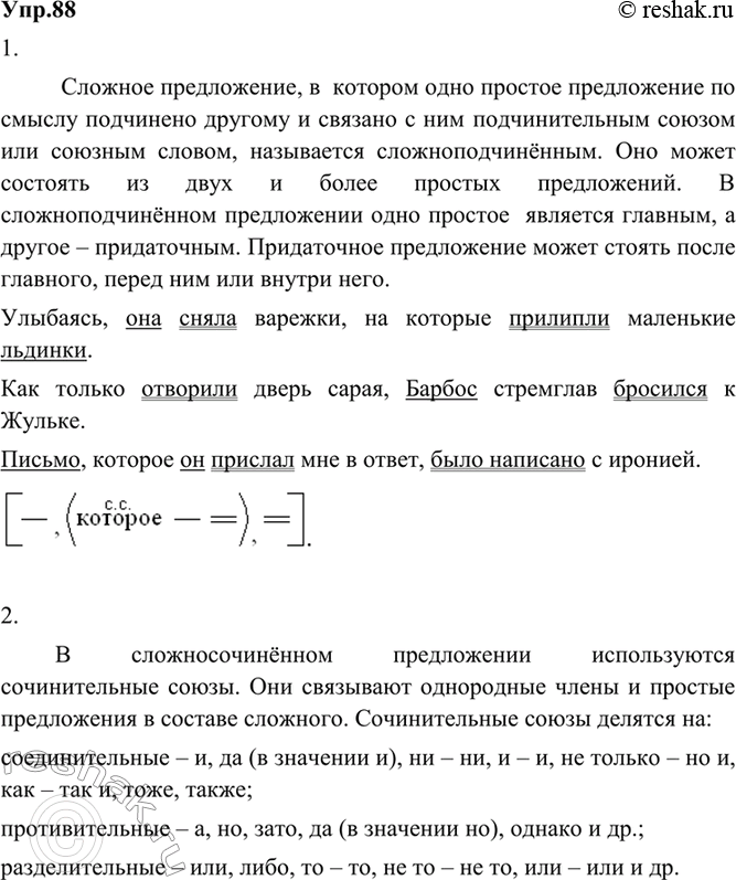 88 1. Расскажите, что вы знаете о сложноподчинённом предложении. Приведите примеры сложноподчинённых предложений. Одно из них запишите и составьте его схему.