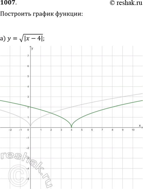 1007. Постройте график функции: а) y=v|x-4|; б) y=|x-4|^(1/3), где x?0.