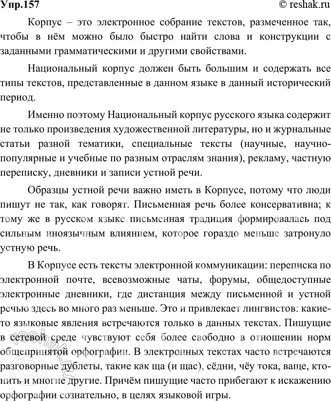 157. Составьте один из вариантов конспекта текста о Национальном корпусе русского языка (упр. 145) или одного из параграфов учебника по обществознанию.